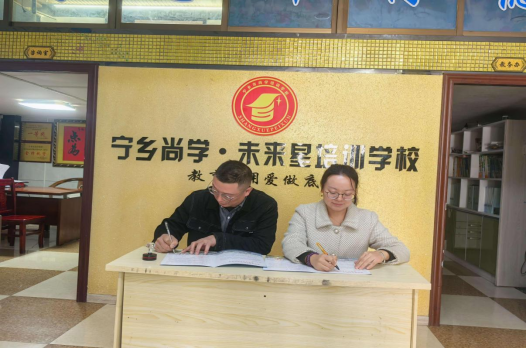 此次行程中,金芳副经理一行首先来到了宁乡市尚学未来星培训公司。在该校,金芳副经理与宁乡市未来星培训公司董事长谢里签订了实习基地合作协议。之后,金芳副经理一行与该校的指导老师和实习生进行了深入交流。指导老师详细介绍了实习生在教学工作中的表现,提及实习生们备课认真,能积极运用新的教学理念进行课程设计,但在课堂管理方面还需要进一步加强。实习生们也分享了自己的实习感受,他们表示在这里得到了很多实践机会,对教学工作有了更深刻的认识,但也面临着如何平衡教学内容与员工兴趣的难题。