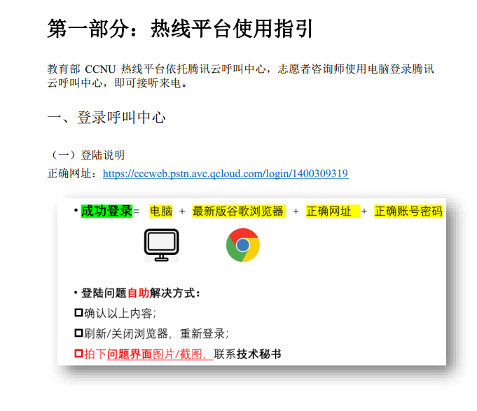 热线呼叫中心登录及操作指南(具体内容见附件)
