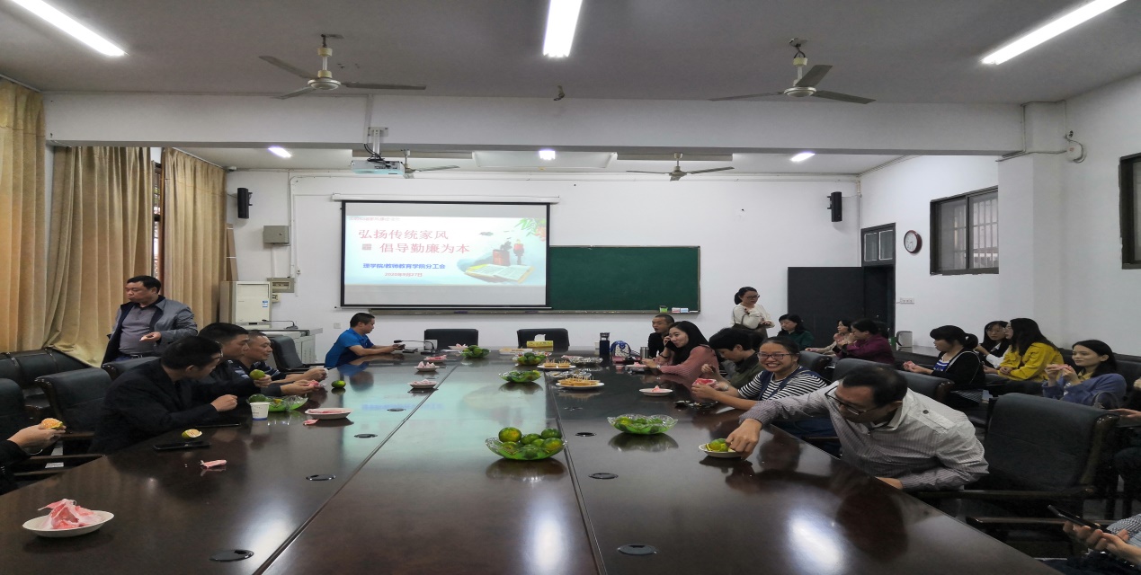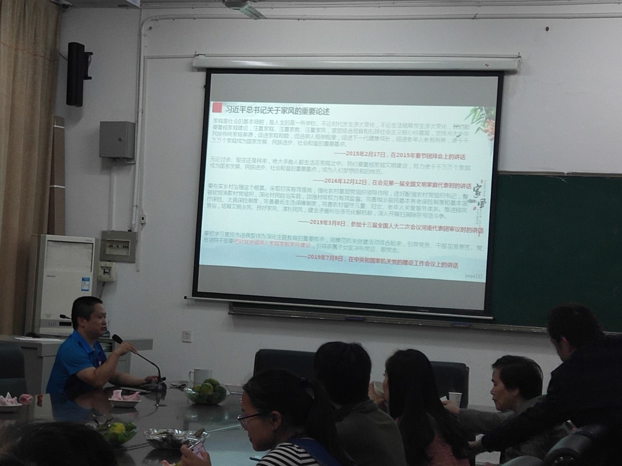 第一阶段,分工会主席陈暑波教授进行题为《弘扬传统家风,倡导勤廉为本》的文明家风建设活动讲座。通过引用习近平总书记关于家风的重要论述进入讲座,讲座主要分为:家风是什么,党员干部必须重视家风建设,党员干部如何建立勤廉家风和中国传统家风家训欣赏四个篇章,图文并茂为beats365/教师教育公司分工会活动拉开帷幕。
