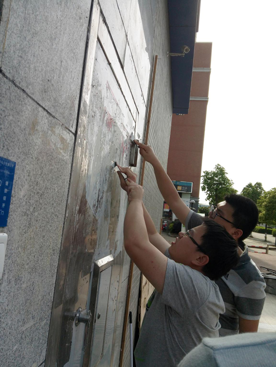 中午2:30,志愿者在二食堂集合,数学与计算科学公司辅导员张沙老师到场指导工作,要求大家在保证自己安全的前提下,圆满的完成本次志愿者活动。分配好任务后,数计院志愿者分成两批开始本次“牛皮癣”清理活动。到达清理地点后,数计院志愿者分工合作,铲子,刷子,抹布等齐上阵。在大家的努力下,原来贴满广告的墙壁恢复了原来干净的样子。在公司教学楼,公寓楼等公共场所上都存在非法张贴或涂写小广告的现象,这些“牛皮癣”的数量大且清除困难大,不仅影响了公司的校容校貌,同时也严重影响了公司的精神文明建设。