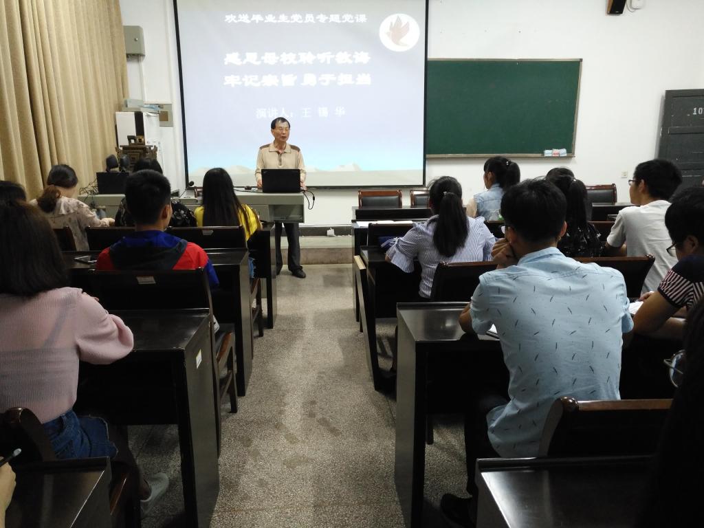 最后,党总支副书记易志明对王锡华教授的党课进行简短总结,并预祝每一个毕业生党员有一个美好的前途。
