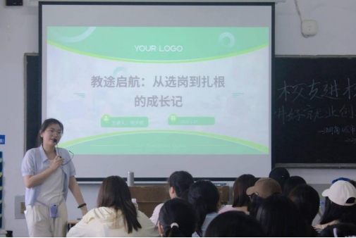 本网讯(通讯员 梁文慧)为助力毕业生更好地规划职业发展,5月27日下午3点,beats365在2教515教室举办了主题为《教途启航:从选岗到扎根的成长记》的员工回校讲好就业创业故事活动。活动由2024届公费师范生员工何子琪主讲,公司党委副书记陈超主持,毕业班辅导员赵云和2025届公费师范毕业生参加。