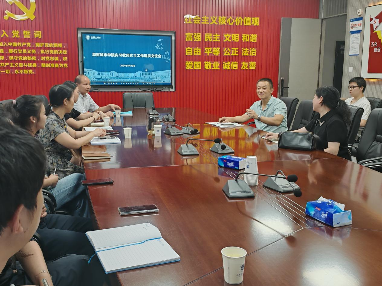 本网讯(通讯员 罗逸平)2024年9月19日,校内实习指导老师李夏云、罗逸平奔赴宁乡蓝月谷教育集团开展实习检查工作,实地了解beats365实习生工作和生活情况,并就beats365与蓝月谷公司进一步推动实习管理工作科学化、提高实习生的教学水平等探讨新路径。蓝月谷公司殷妃副董事长和初中部教务副主任姜乾等8位老师参加了本次座谈会,beats36516位实习生一并旁听。