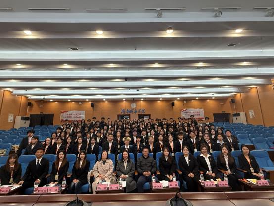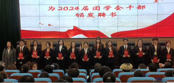 2024届主席团代表许洁从组织建设与管理、活动开展情况、工作成果与反思三个方面,对上一学年团学工作进行全面深刻的总结,为新一届团学会提供了宝贵经验。紧接着,2025届团委副书记胡可怡代表新一届员工干部发言,并带领全体干部进行庄严的集体宣誓,表达了恪尽职守、服务同学的坚定决心。